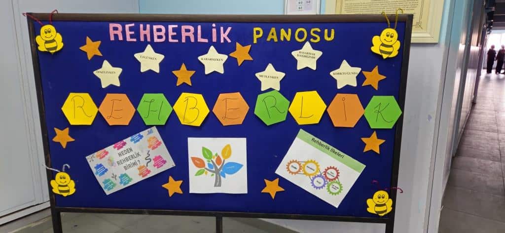 Ayrıca öğrencilerimizin bireysel gelişimlerini desteklemek amacıyla Rehberlik Servisi tarafından hazırlanan rehberlik panosu da güncel konularla donatılmıştır.